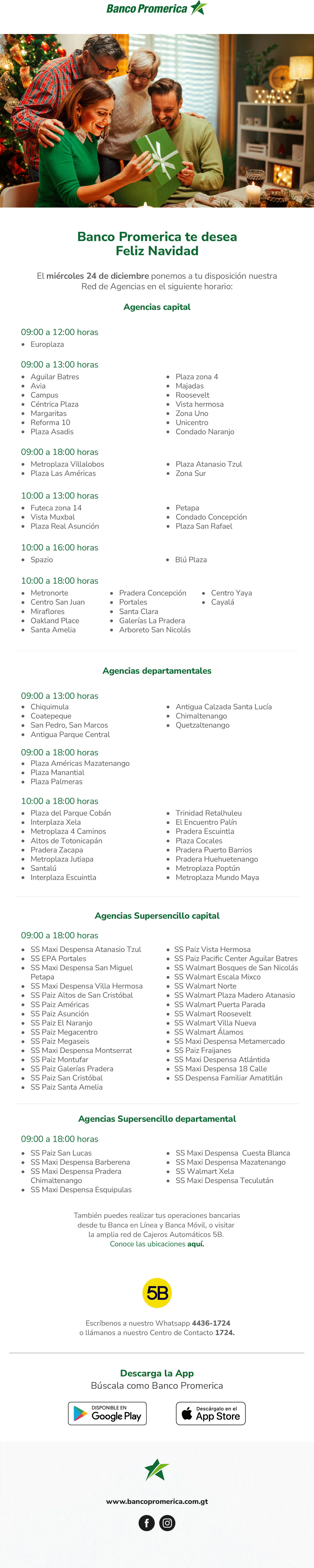 Comunicación horarios navideños 2025