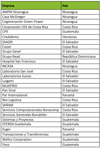 Este riguroso proceso dio como resultado la distinción de 28 organizaciones en los 7 países de la región. Estas empresas, enlistadas a continuación en orden alfabético, generan en conjunto más de 7,000 empleos: