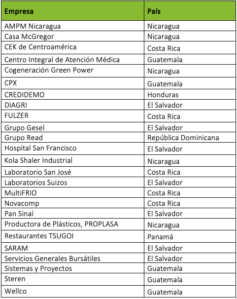 Este riguroso proceso dio como resultado la distinción de 25 organizaciones en los 7 países de la región, sumando por primera vez al programa, compañías reconocidas en Panamá y República Dominicana. Estas empresas, enlistadas a continuación en orden alfabético, generan en conjunto más de 6,000 empleos: